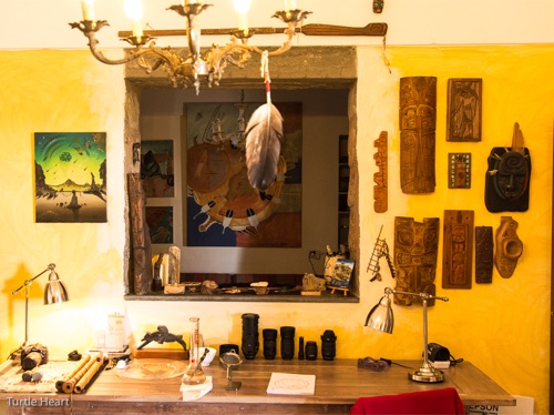 1975 to 2015. Turtle Heart has been painting for 35 years. Today the artist resides on and works from a tiny Mediterranean Island: Pantelleria. Just 25 miles from Africa, it is a quiet and magical land of gardens, magical wine and a slow pace.