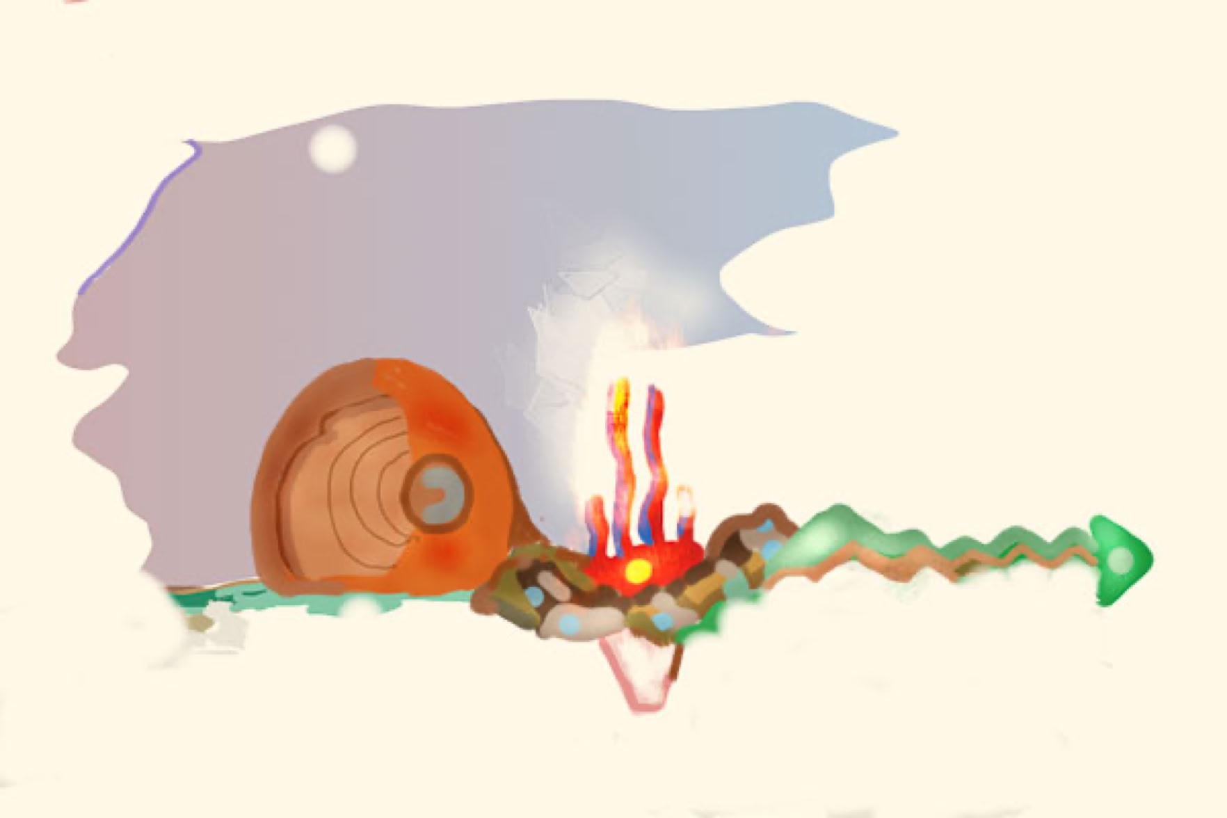 Above : ”Two Moons At the Edge of the Universe”. An early painting from the 1970s of the Sacred Fire experience. From 1975. Rocky Hill Connecticut. Watercolor on paper. Prints of this work are available.